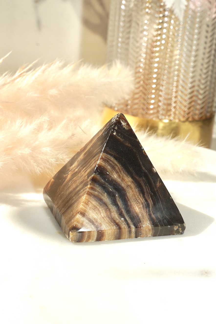 Crystal Practice:To harness the metaphysical properties of a Chocolate Calcite Pyramid. place it in your home or workspace. preferably in a central location. to help create a sense of emotional stability and grounding energy. Meditating with the pyramid can also aid in releasing emotional stress and finding inner balance.