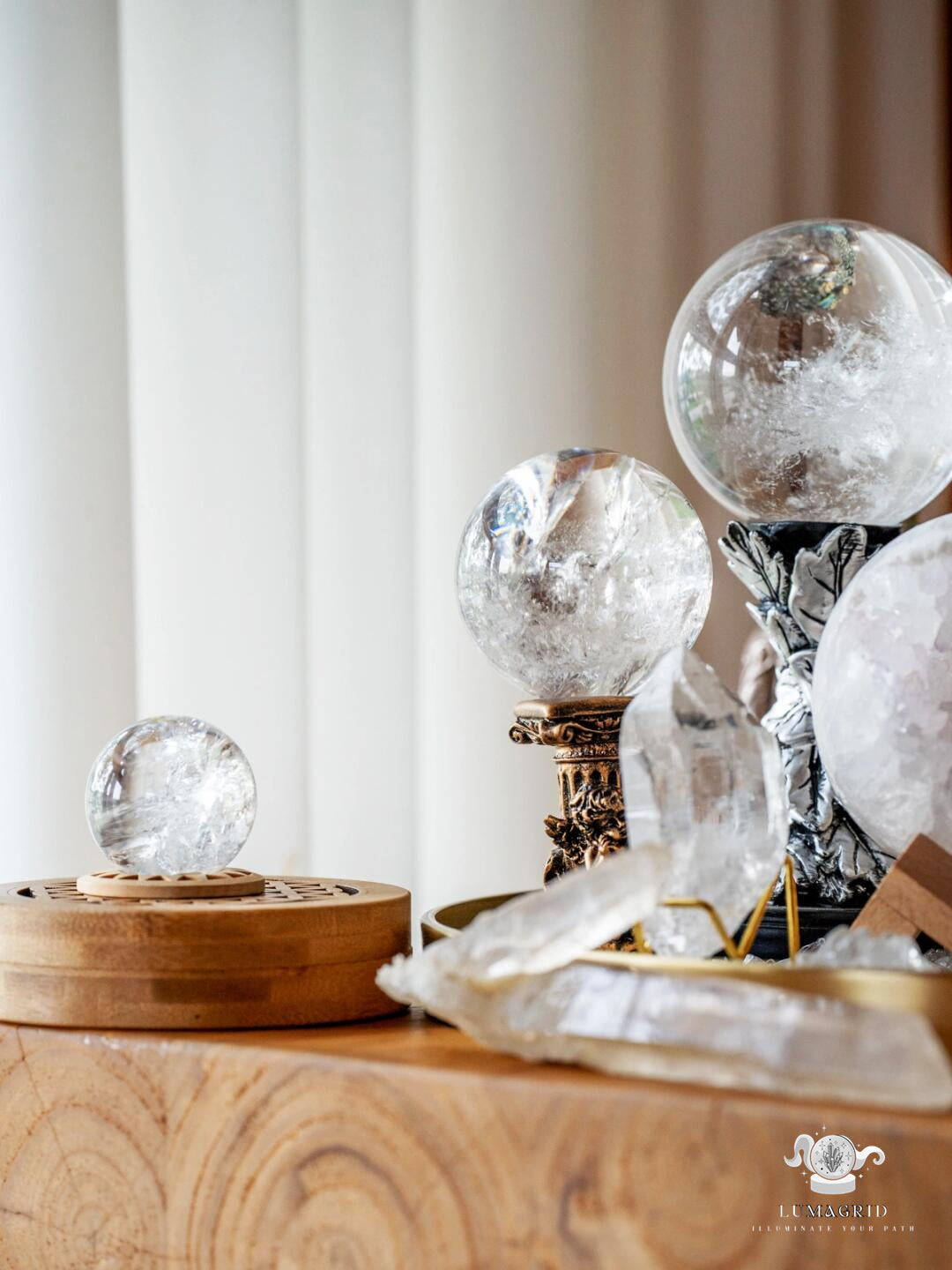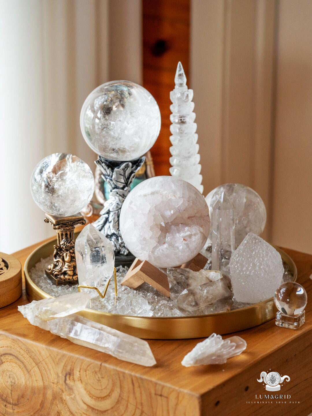 • Clear Quartz can also be placed around the room to amplify spiritual practices, creating an environment that supports alignment with higher consciousness and deep spiritual connection.